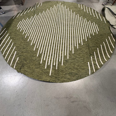 Description: Unique Loom Green Geometric Round Poly Outdoor Rug Condition: GoodDetails: some seem tears,