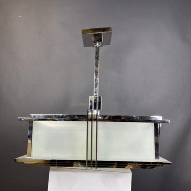Description: Modern Deco 2-Light Chrome with Frosted Glass Semi-Flush Ceiling Pendant Condition: GreatDetails: