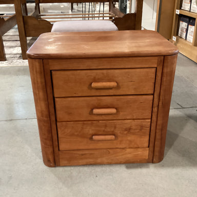 Description: Vintage Wood 3 Drawer Night StandCondition: Slight Top Split