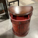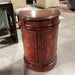 Antiqued Red Painted Floral 1 Drawer 2 Door Demilune Cabinet End Table 22"x 13"x 32.5"