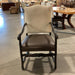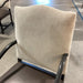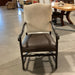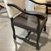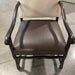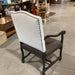 Black Carved Wood Leather Seat & Linen Nailhead Armed Dining Chair 25"x 26"x 42"