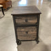 Carbon Oak Wood Style Laminate & Metal on Casters 2 Drawer End Table 18"x 21.5"x 26.5"