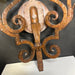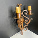 Gothic Revival 2-Light Rust Patina Metal Scroll Candlestick Wall Sconce 11”x 15.5”x 5.5”