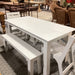 lOll White High Density Plastic Table with 2 Chairs 2 Stools 1 Bench Dining Set 62"x 30"x 30"