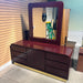 Maroon Lacquer Finish & Brass Finish Base 6 Drawer 2 Door with Mirror Dresser 71"x 20"x 76"
