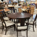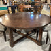 Round Dark Finish Wood Cross Trestle Base Table with 6 Asian Style Chairs Dining Set 60" Diameter x 30.5"