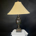 Traditional Deep Brown/Red Textured Resin Urn with Shade Table Lamp 23” Diameter @ Shade x 32”