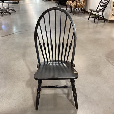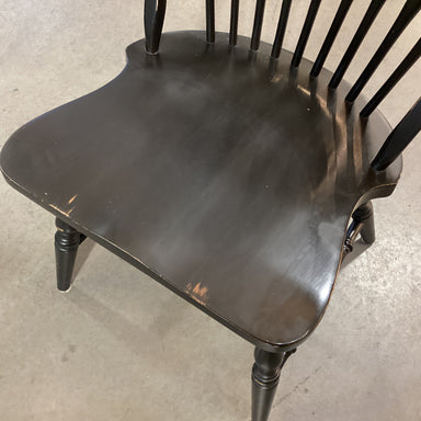Description: Windsor Style Antiqued Black Wood Dining ChairCondition: Slight Wear, Purposeful Distressing