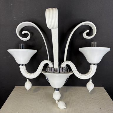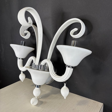 Description: Cyan Designs 2-Light Chrome and White Murano Glass Wall Sconce Condition: goodDetails: missing two glass dangles
