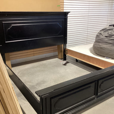 Description: KING Ethan Allen Black Finish Wood Panel Detail Sleigh Bed SetCondition: Some Wear Marks & Scratches