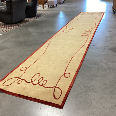 Description: Gold & Rust Red Ribbon Hand Knotted Hand Spun Wool Custom Made in Nepal RugCondition: Slight Wear