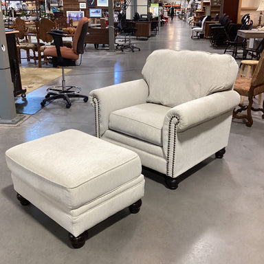 Description: Ashley Furniture Cream Woven Nailhead with Ottoman ChairCondition: Some Upholstery WearDetails: Ottoman - 30"x 24"x 18"