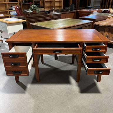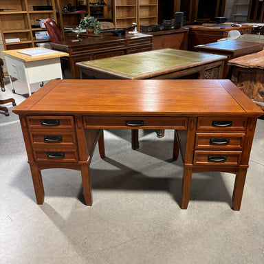 Description: Medium Finish Solid Wood 5 Drawer DeskCondition: Few Scratches