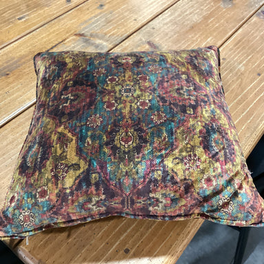 Description: Plum Teal Gold Design Velvet with Down Insert Accent PillowCondition: Slight Wear
