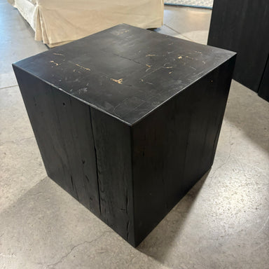 Description: Restoration Hardware Black Finish Reclaimed Oak Cube Accent TableCondition: Some Wear & Finish ScratchesDetails: Retails ~$900