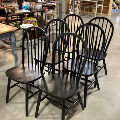 Description: SET of 6 Thomasville Black Oak Windsor ChairsCondition: Slight Wear