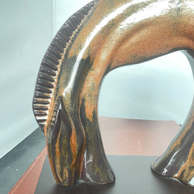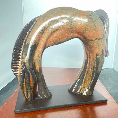 Description: Tony Evans Raku Pottery Horse Sculpture on Stand, 13"x 6"x13"Condition: Very Good