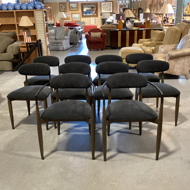Description:Set Of 10 Arhaus Jagger Cinder & Downy Ebony Upholstered Wood & Metal Modern Dining Chair Condition: Few Stains & Metal