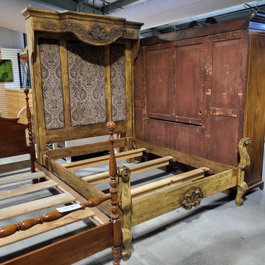 Description: QUEEN Ornate Carved Solid Wood with Gold & Dark Brown Finish & Claw Feet Poster BedCondition: Good, Some WearDetails: NO SLATS