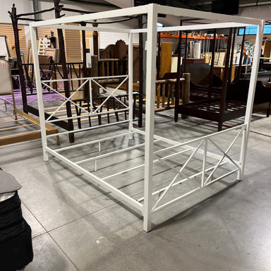 Description: QUEEN White Metal Canopy Bed SetCondition: Great