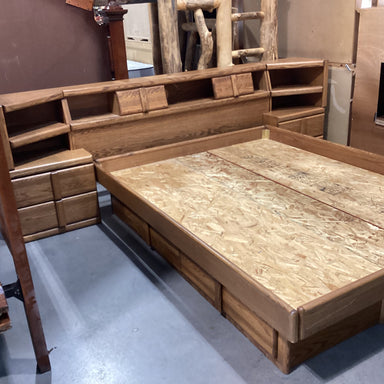 Description: Custom Solid Light Finish Wooden Queen Bed FrameCondition: Some Wear Scratches & ChipsDetails: NO SLATS