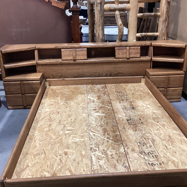 Description: CUSTOM Light Brown Leather with 4 Drawer Platform Bed SetCondition: Some ScratchesDetails: Fits a Custom Mattress But Will Fit a Full ...