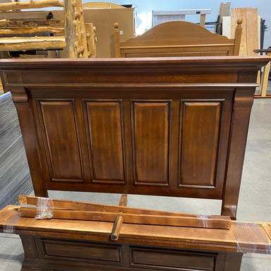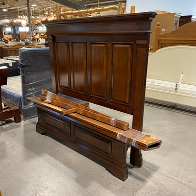 Description: QUEEN Dark Finish Solid Wood Sleigh BedCondition: Wear & ScratchesDetails: No Slats or Crossbar