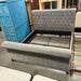 KING Grey Linen Nail Head Slay Style Bed Set