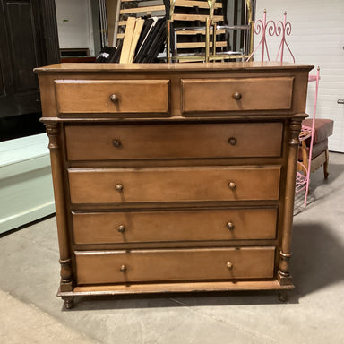Description: Vintage Distinctive Furniture by Stanley Finished Maple 6 Drawer ChestCondition: Few Scratches