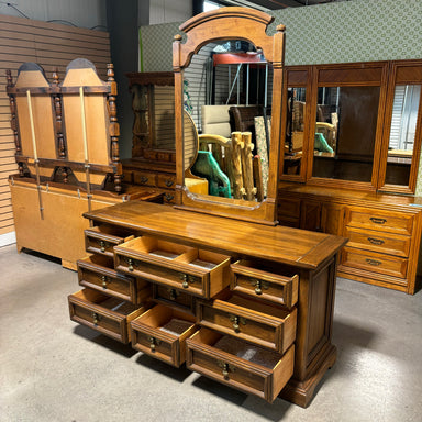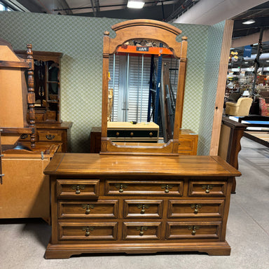 Description: Lenoir House Finished Oak 9 Drawer with Mirror DresserCondition: Some Wear & Scratches
