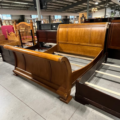 Description: KING Bernhardt Solid Light Finish Wood Sleigh Bed setCondition: Has Scratches