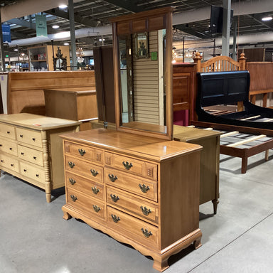Description: Vintage Distinctive Furniture by Stanley Finished Maple 8 Drawer with Mirror DresserCondition: Some Top Scratches