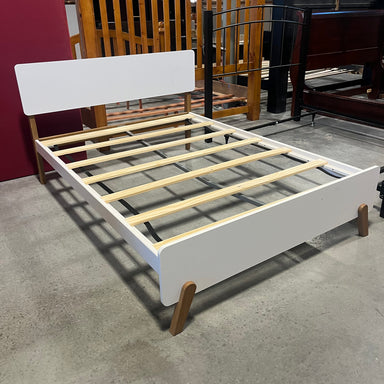 Description: FULL Wood and Wood Laminate Platform Bed SetCondition: Good, Some Scratches