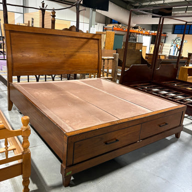 Description: KING Aspen Home Medium Finish Wood 2 Drawer Platform Bed SetCondition: GoodDetails: Has A Few Scratches