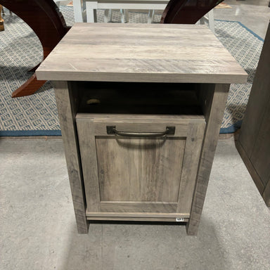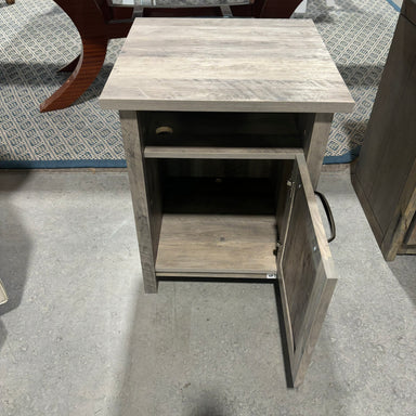 Description: Grey Washed Wood Style Laminate 1 Door NightstandCondition: Some Scratches