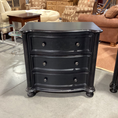 Description: Hooker Furniture Black Finished Wood 3 Drawer Chest NightstandCondition: Few Nicks & Scratches