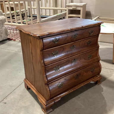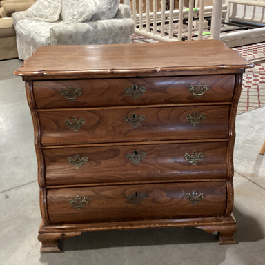 Description: Antique Ornate Carved Wood Brass Accent Pulls & Keyhole 4 Drawer ChestCondition: Wear Consistent with Age