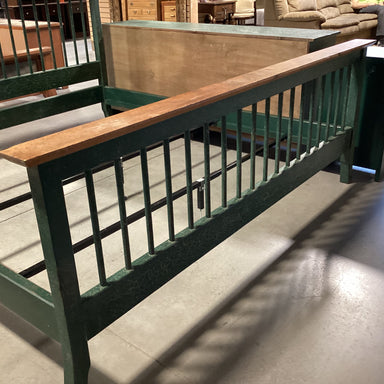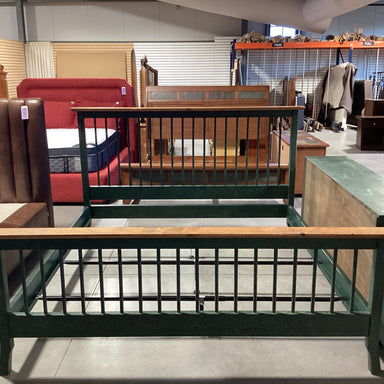 Description: KING Green Crackle & Natural Finish Pine Bed SetCondition: Some Wear & Finish Scuffs
