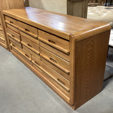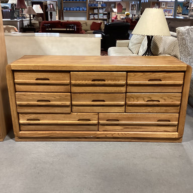 Description: Vintage Finished Oak 8 Drawer DresserCondition: Wear Consistent with Age, Overall Nice Condition