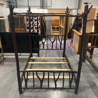 Description: QUEEN Ornate Carved Dark Finish Branch Style with Bird Accent Canopy BedCondition: Great, Slight WearDetails: Complete Set