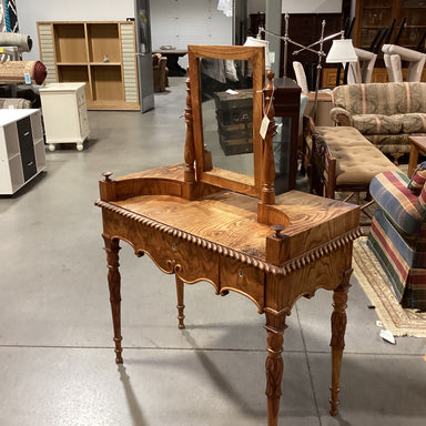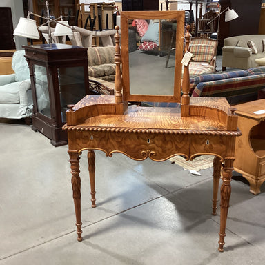 Description: Antique American Carved Wood & Veneer 5 Drawer with Mirror Ladies Vanity DresserCondition: Veneer Buckling Chips & Marks