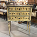 Description: Antique Spindle Leg Hand Painted Bird & Floral 3 Drawer Chest
