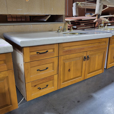 Description: Green Granite Top 3 Drawer 4 Door with Kohler Sinks Double Sink VanityCondition: GoodDetails: Needs Toe Kick, HEAVY DELIVERY