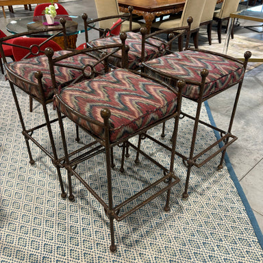 Description: SET of 4 Rustic Metal with Multi Color Cloth Seat BarstoolsCondition: Some Wear