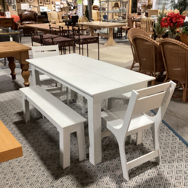 Description: lOll White High Density Plastic Table with 2 Chairs 2 Stools 1 Bench Dining SetCondition: Great, Slight WearDetails: Retails $2,895 fo...