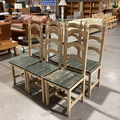 Description: SET of 6 Buffalo Lodge & Dakota Washed Distressed Cream & Green Wood Ladder Back Ranch Dining ChairsCondition: Some Loose Wobb...