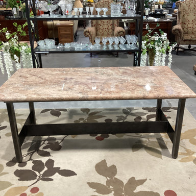 Description: Peach Cream Black Stone Top with Steel Base Dining TableCondition: Great, Slight WearDetails: SPECIAL DELIVERY