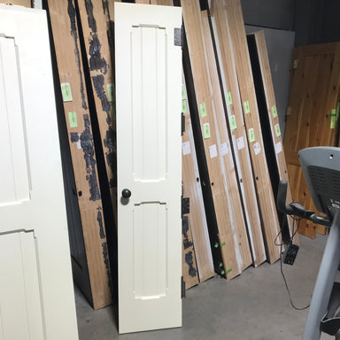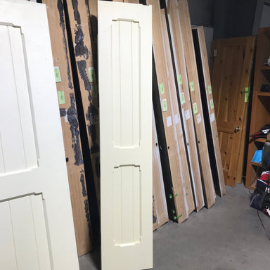 Description: 17.75"x 83.25"x 2.25" Cream Vertical Lined 2 Panel Interior Door with Ball Catch on Top LHCondition: Good