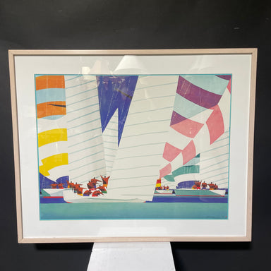 Description: Ian Tremewen "Spinnaker Sky" Print In Light Wood Frame Condition: In good condition - some scratches on the frame. Details: Was origin...