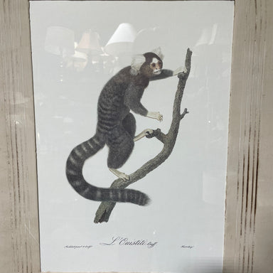 Description: Amen Wardy "L'Ouistiti" Audebert Monkeys Hand Colored Watercolor Print Condition: In good condition - the frame has scratches and scuf...